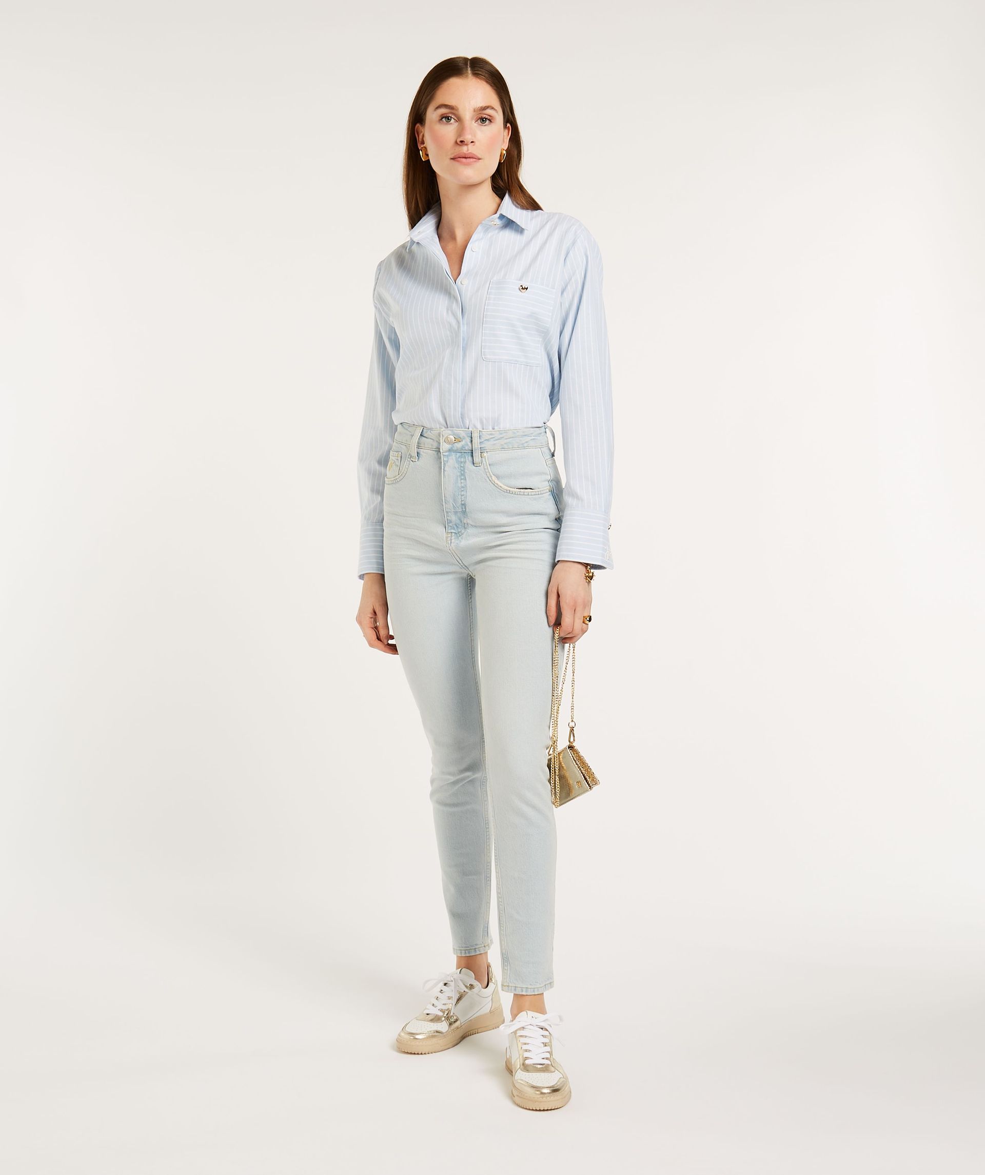 O jeans feminino JOSH V Loes em Denim Azul Claro tem um ajuste médio e ajuste confortável. O jeans é feito de uma boa qualidade de denim com estiramento. O logotipo bordado da JV no bolso traseiro adiciona um acento sutil da marca.