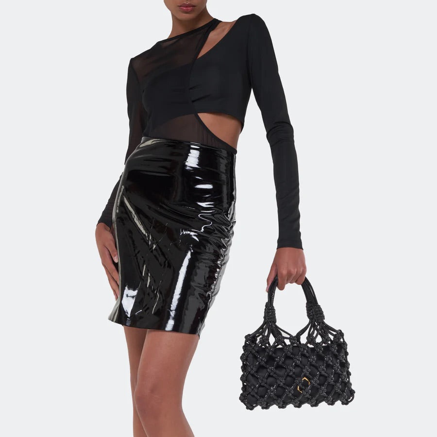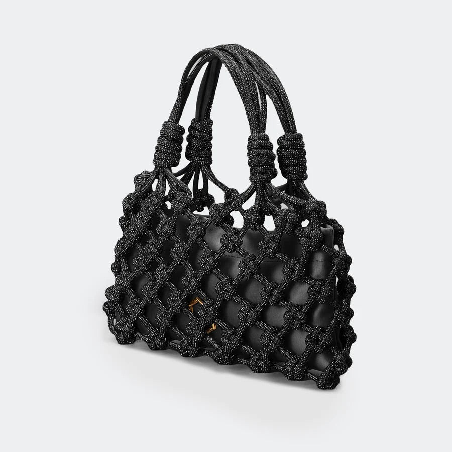 Composition : 100% maille de résine et cristaux ; Sac 100% cuir de veau