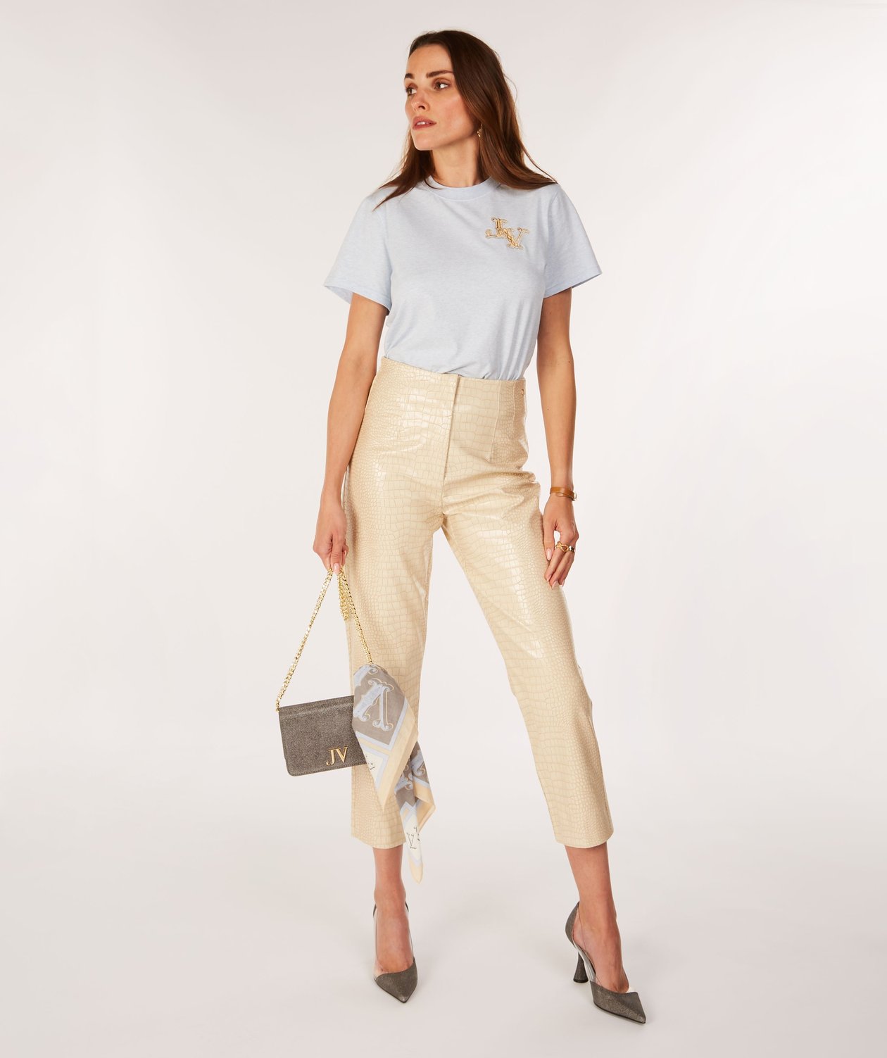 Êtes-vous à la recherche d'un pantalon polyvalent que vous pouvez porter aussi bien de manière décontractée que lors d'occasions festives ? Alors le pantalon JOSH V Marina en Cocoon White est le choix idéal. Vous pouvez porter un pantalon en similicuir de manière décontractée avec un t-shirt oversize et des baskets ou avec élégance avec un chemisier et des talons. Le pantalon en simili cuir motif croco présente une taille haute et une coupe slim et fuselée. Vous pouvez également augmenter la longueur du pantalon si nécessaire.