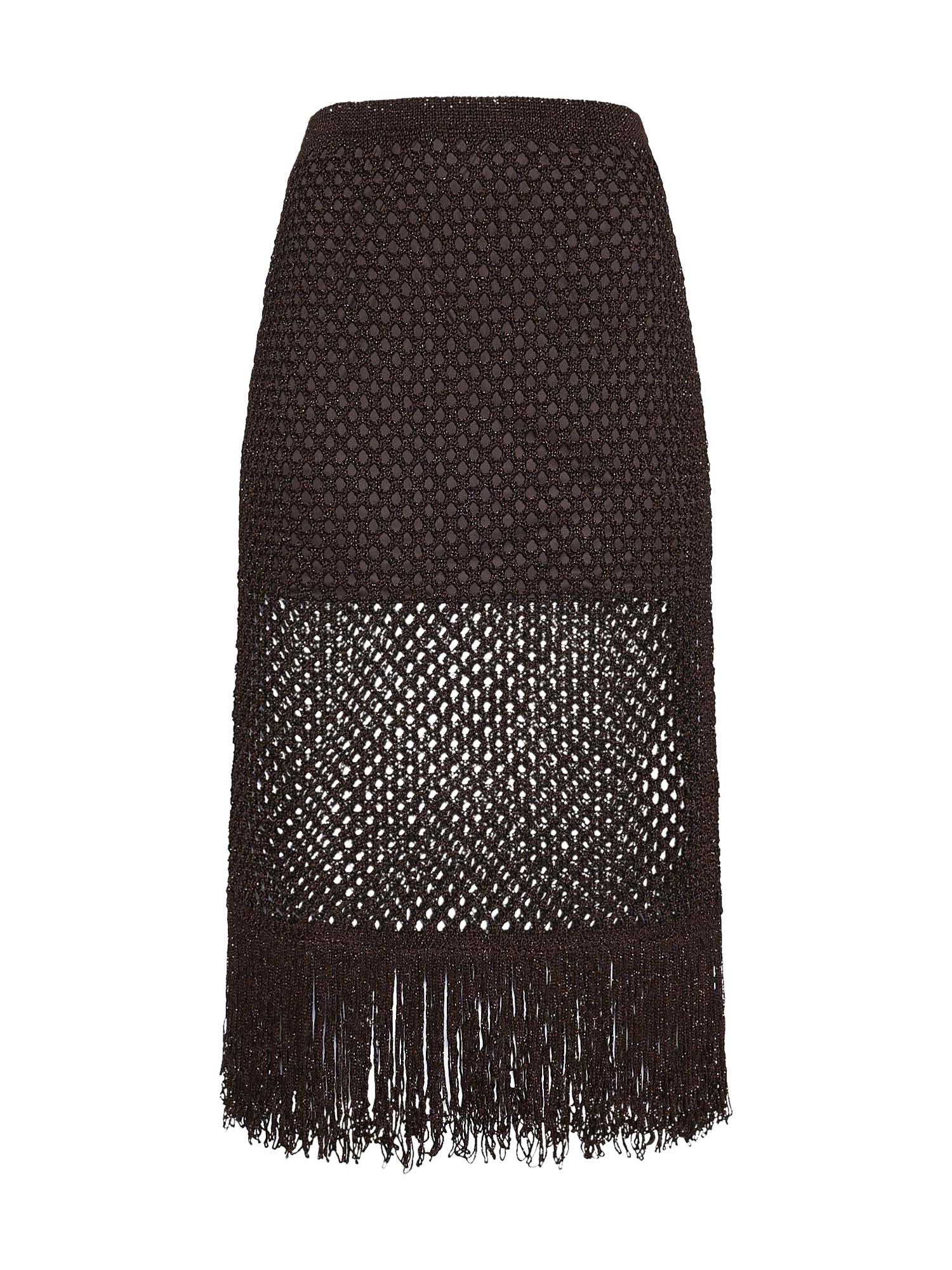 Saia midi de crochê em fio de lurex. Uma franja correspondente é aplicada na bainha.