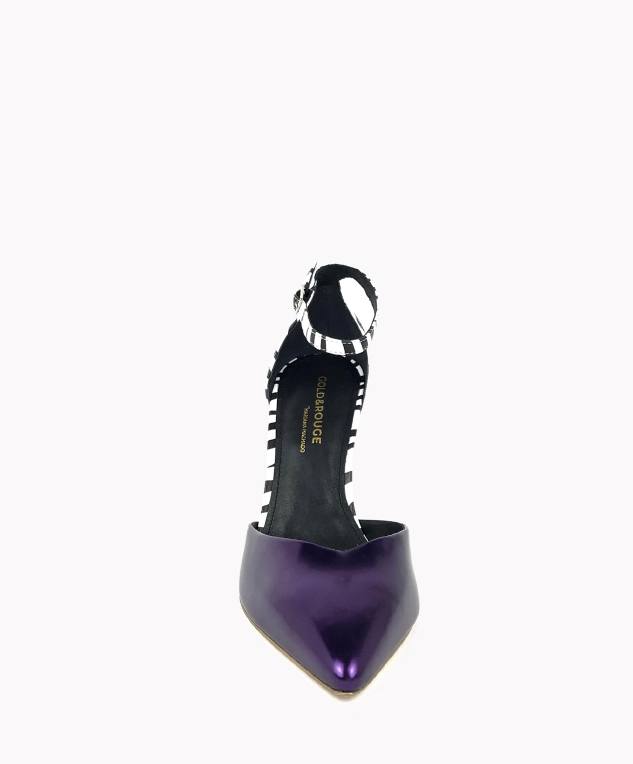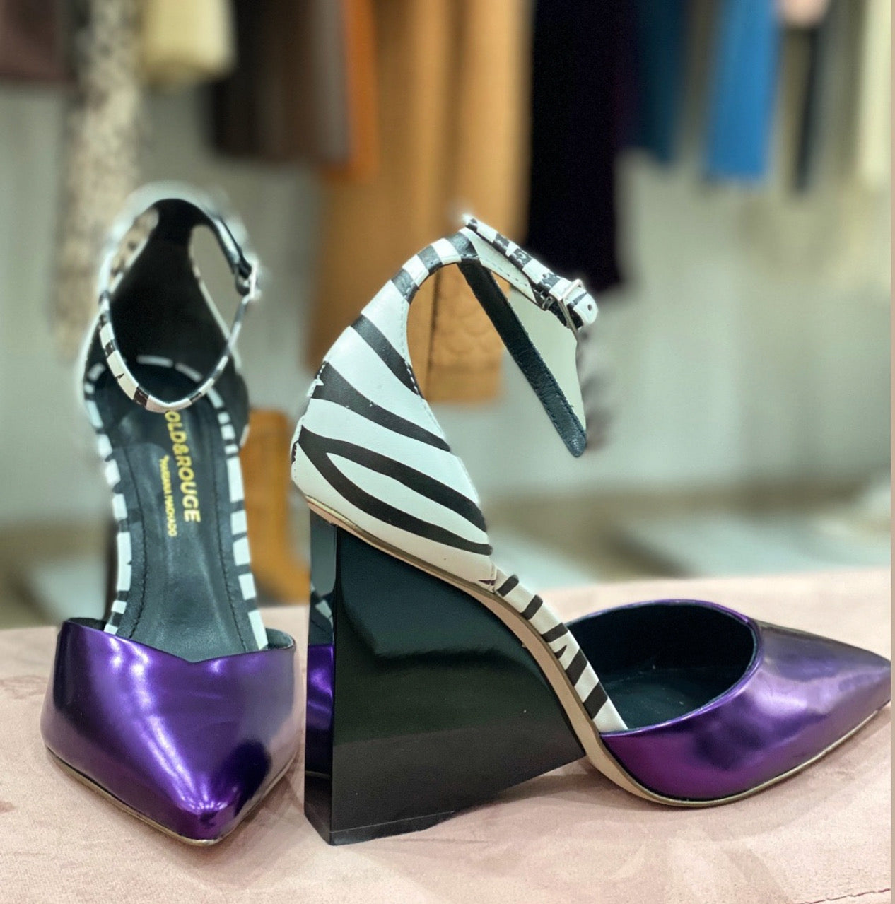 Uma versão em destaque, produzida em verniz com acabamento metalizado, palmilha e traseiro em mestiço com padrão Zebra. Um calce hiper confortável com cunha alta em acrilico, feita à mão. Para os looks mais fashionistas. Upper.: Couro; Palmilha.: Couro macio; Sola.: Couro; Altura do salto: 10 cm
