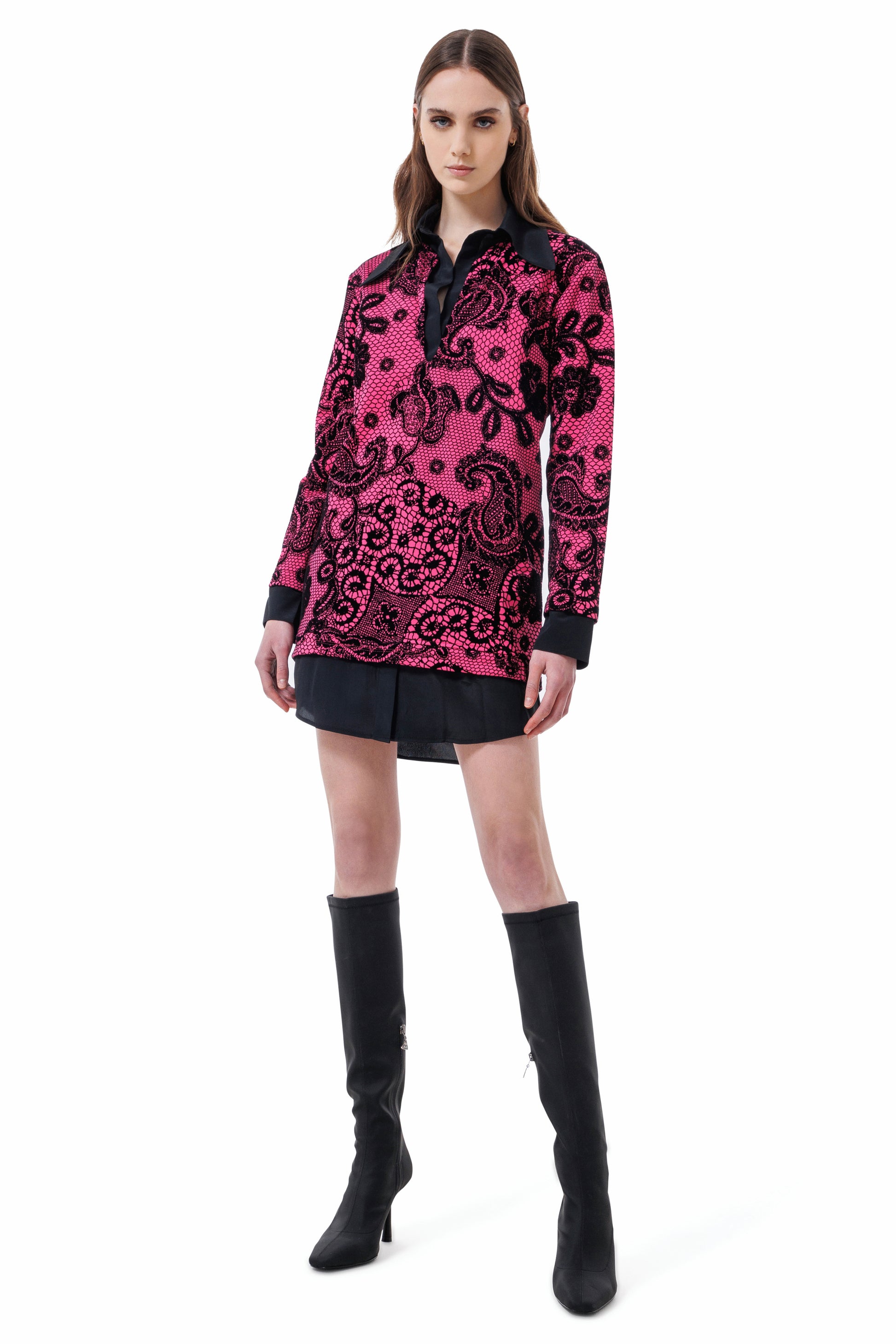Chemise/robe Jijil noire et rose avec quelques motifs, très stylée pour un dîner ou une soirée.