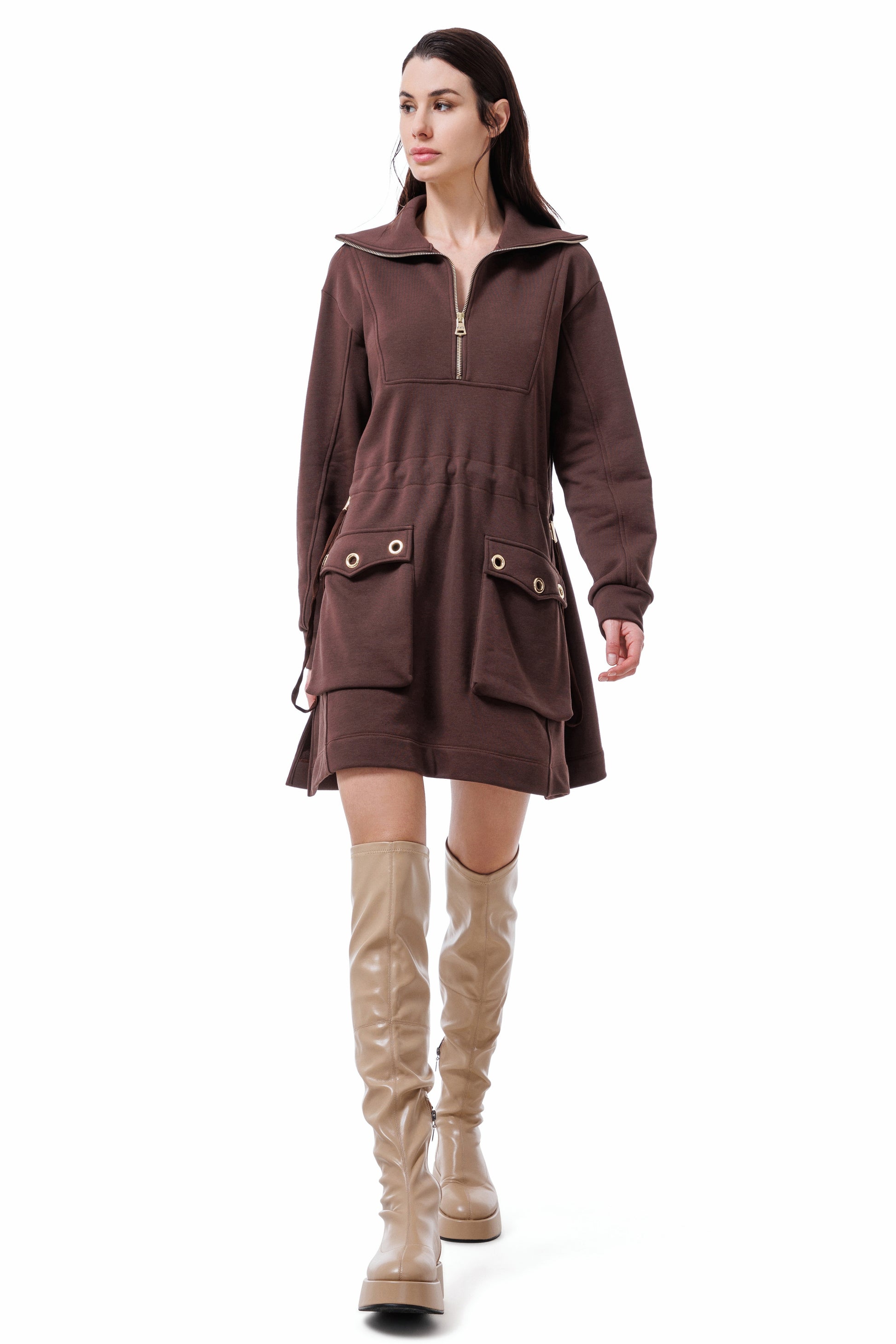 Robe/pull marron réglable à la taille avec poches avant de Jijil.