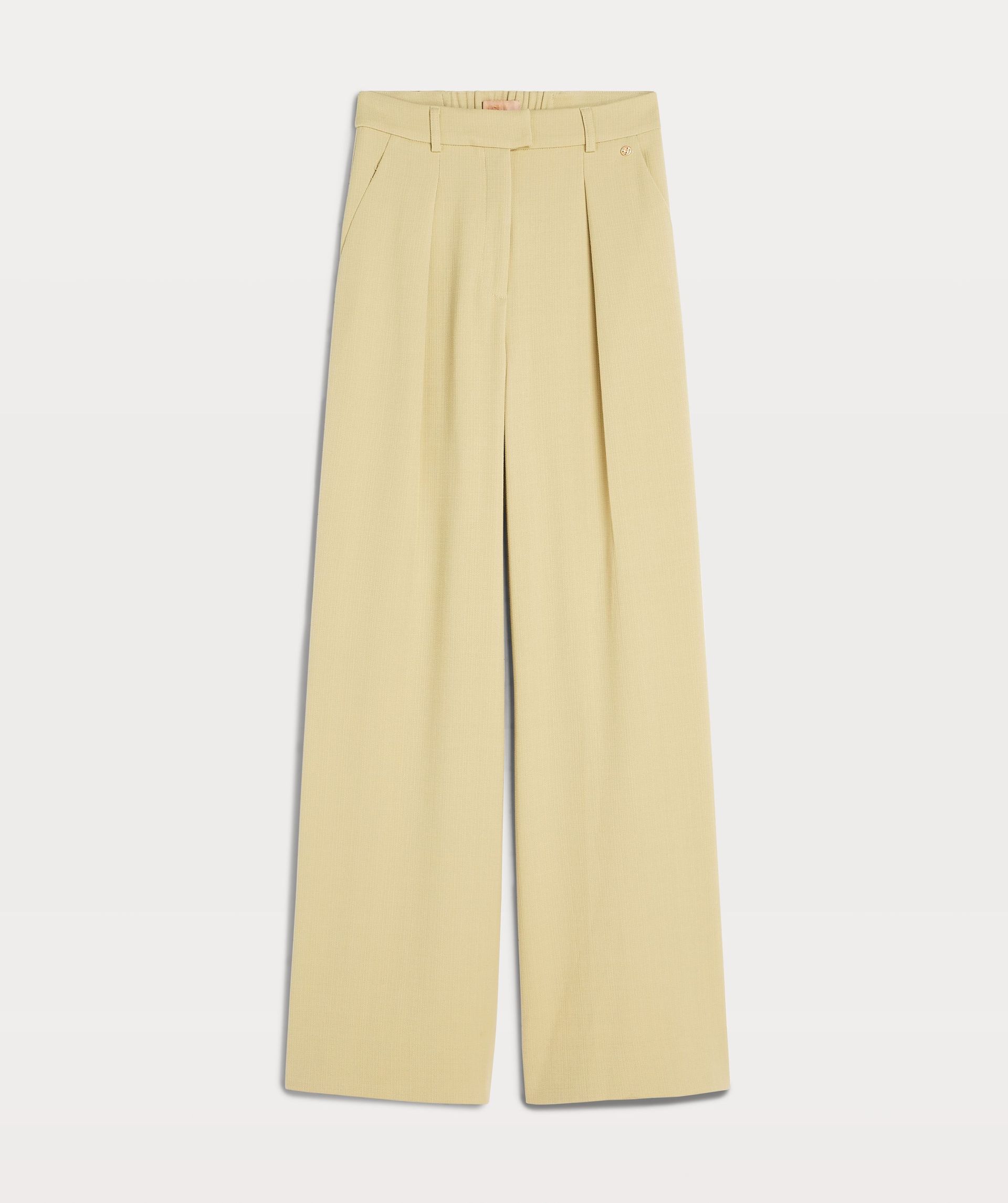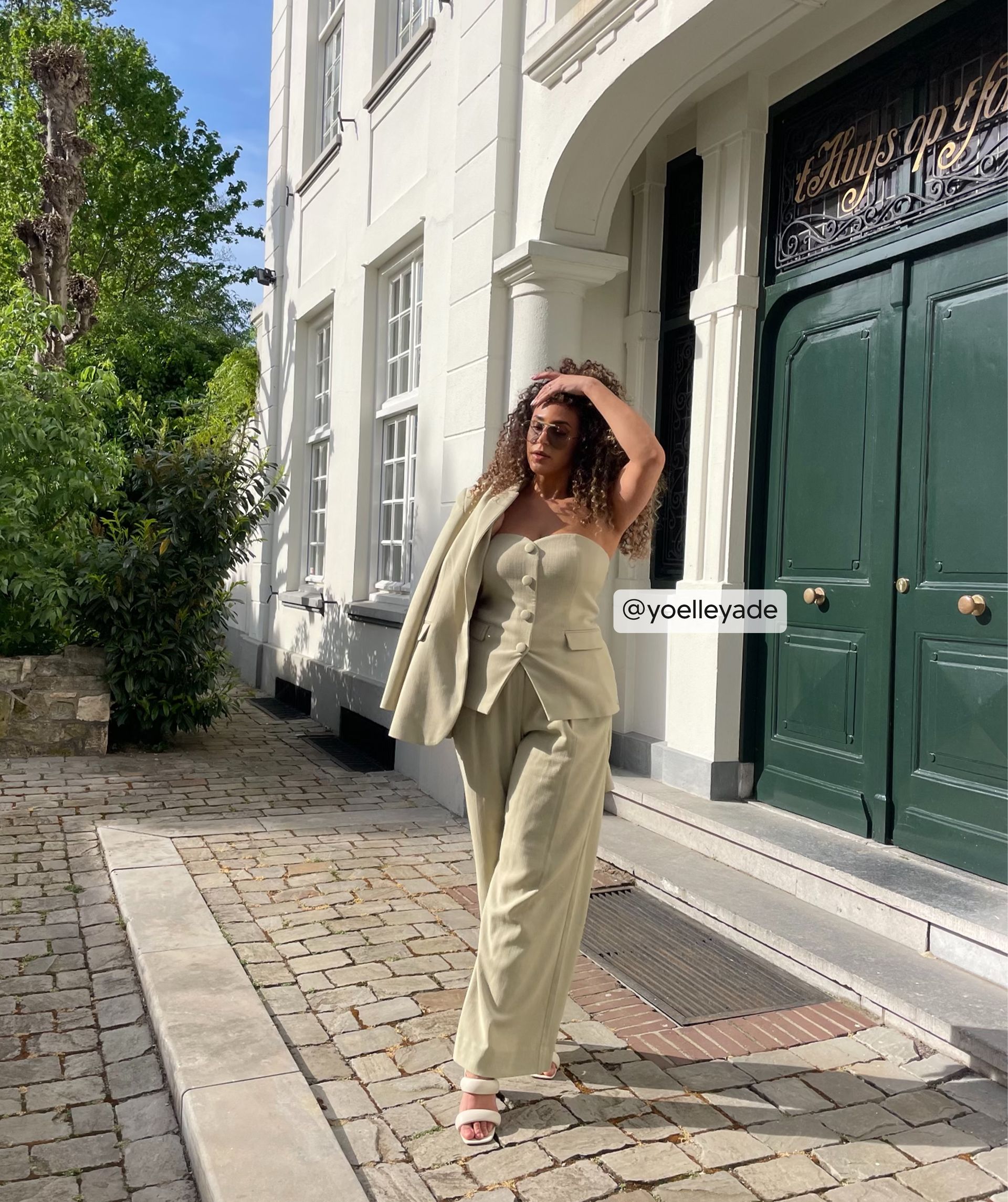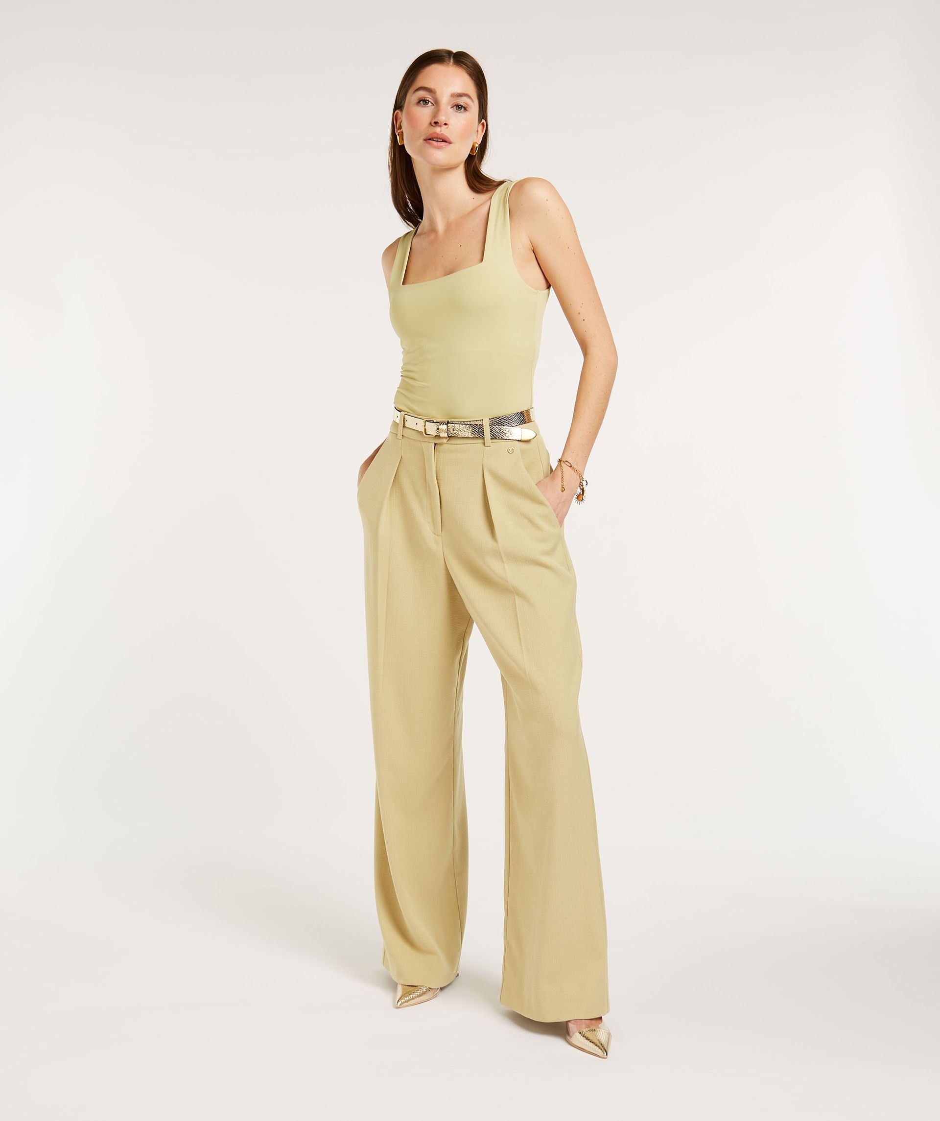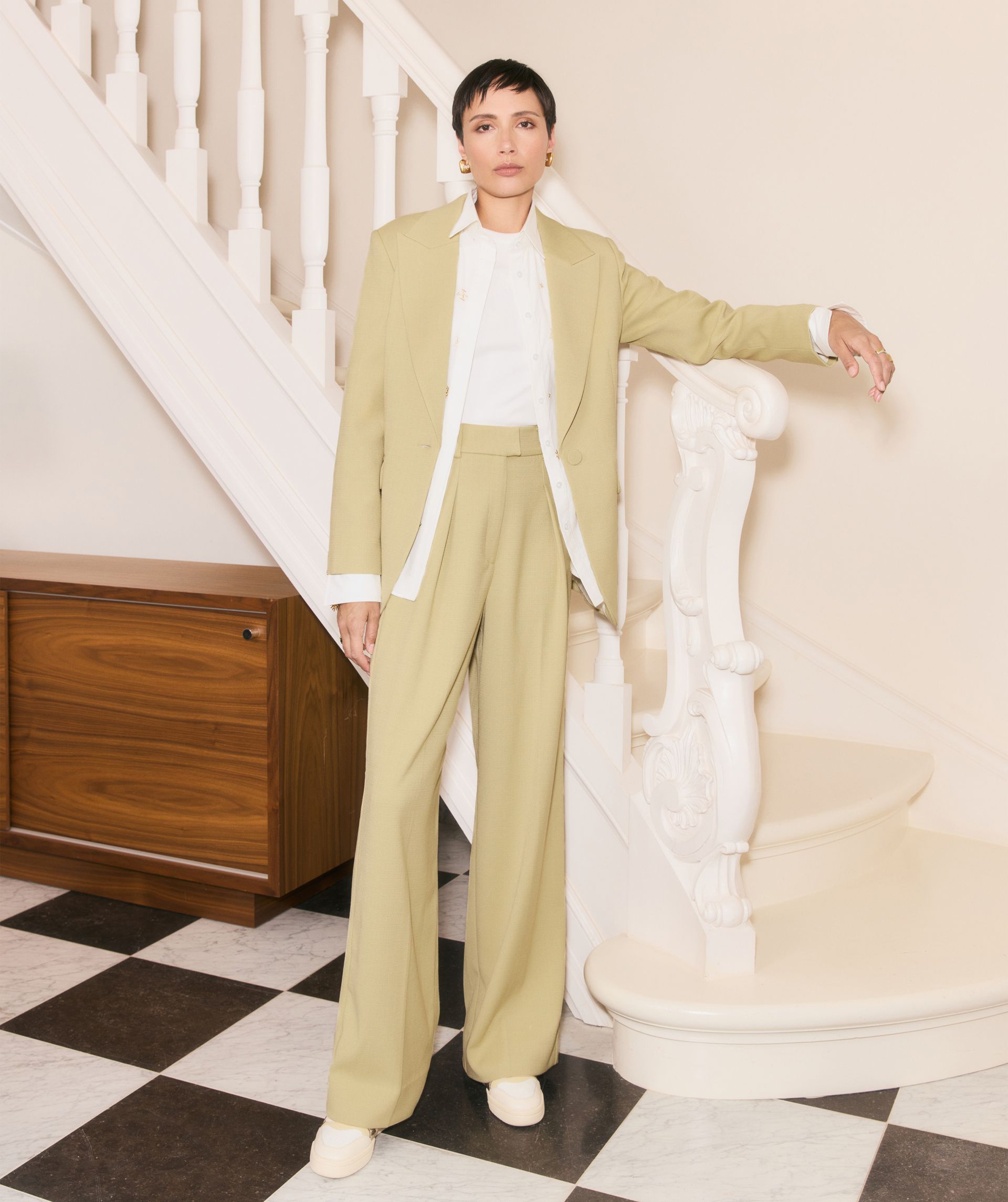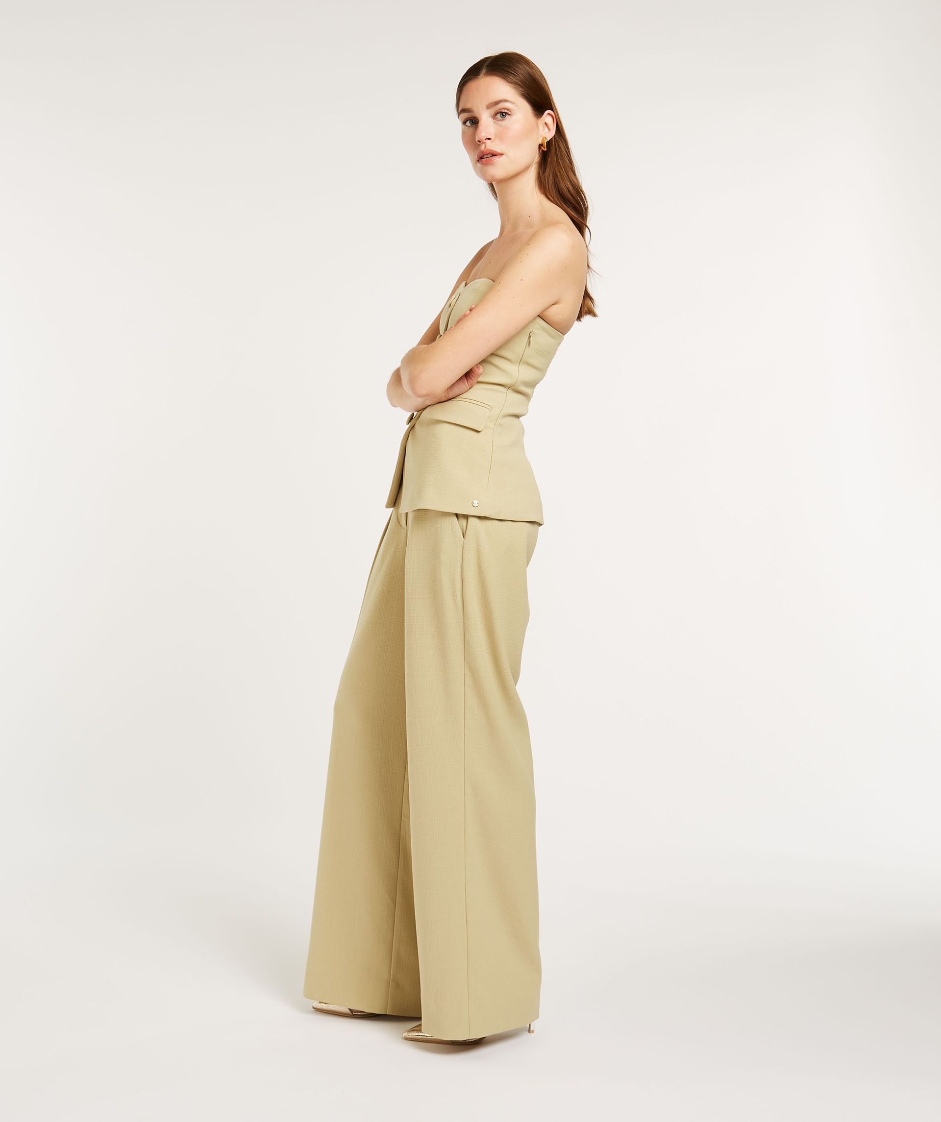 As calças femininas JOSH V Lia em Pistachio são feitas de tecido estruturado confortável. Com uma perna ultralarga e cintura alta, essas calças não só oferecem um visual bonito, mas também conforto. As calças verde-claro apresentam elástico na parte de trás e uma bainha extensível para um ajuste ideal. Combine as calças de perna larga com o blazer Jade ou o top bustiê Niva combinando para um terno completo de 3 peças.