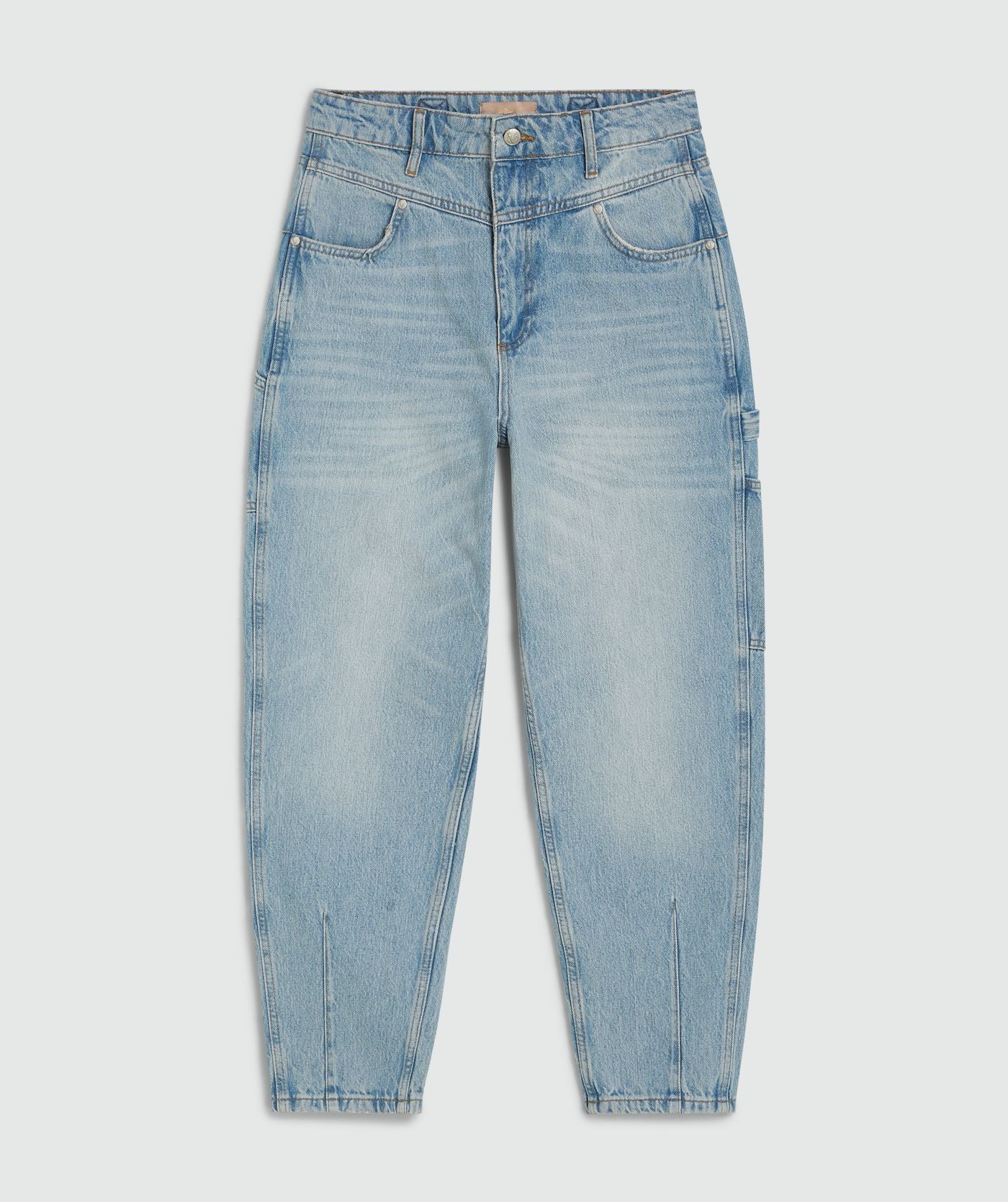 Os jeans Mason destacam-se pelo seu corte mid-rise e tapered fit, criando uma silhueta moderna, feminina e extremamente versátil. A cintura média garante conforto e elegância, enquanto a perna ligeiramente afunilada alonga visualmente a perna e favorece todos os tipos de corpo.