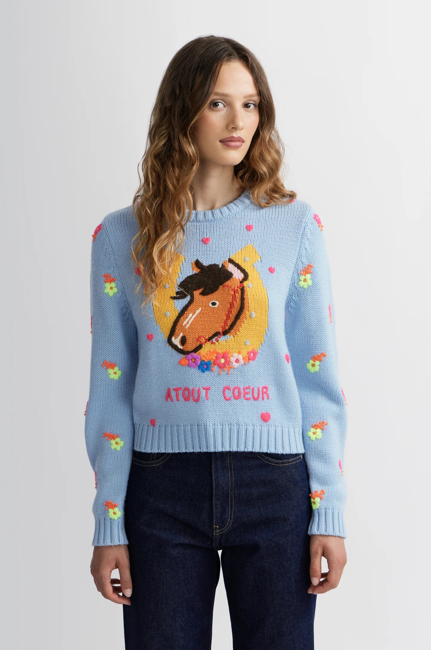 A Camisola Pull Luck da Manoush foi pensada como um verdadeiro amuleto de sorte. Com um design expressivo e cheio de personalidade, é ideal para combinar com peças estampadas, criando um look ousado, vibrante e fiel ao espírito distintivo da marca.