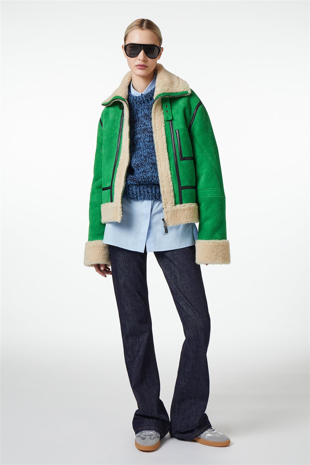 Casaco Oversized em Camurça Verde-Lattuga com Acabamentos em Pele – Iceberg