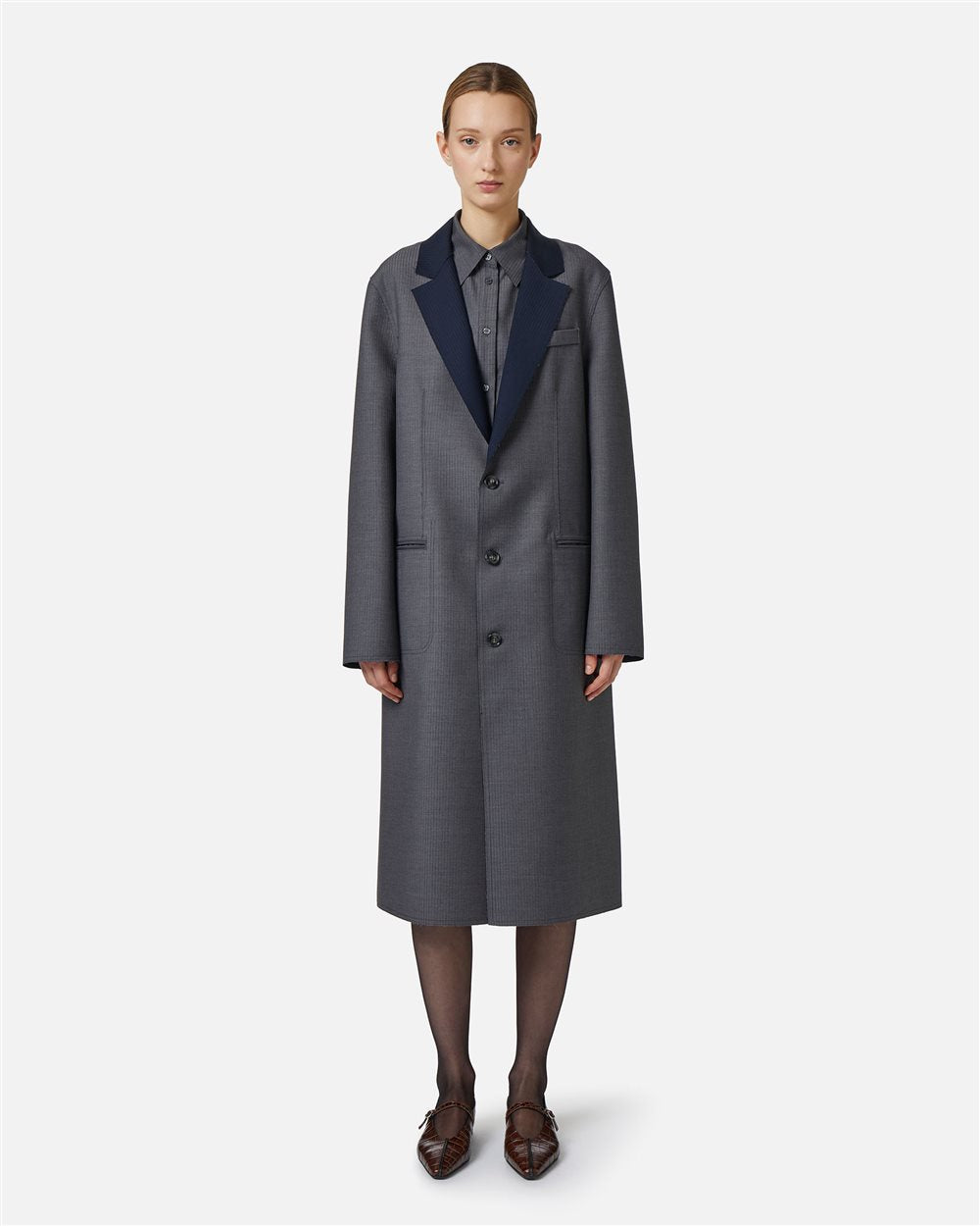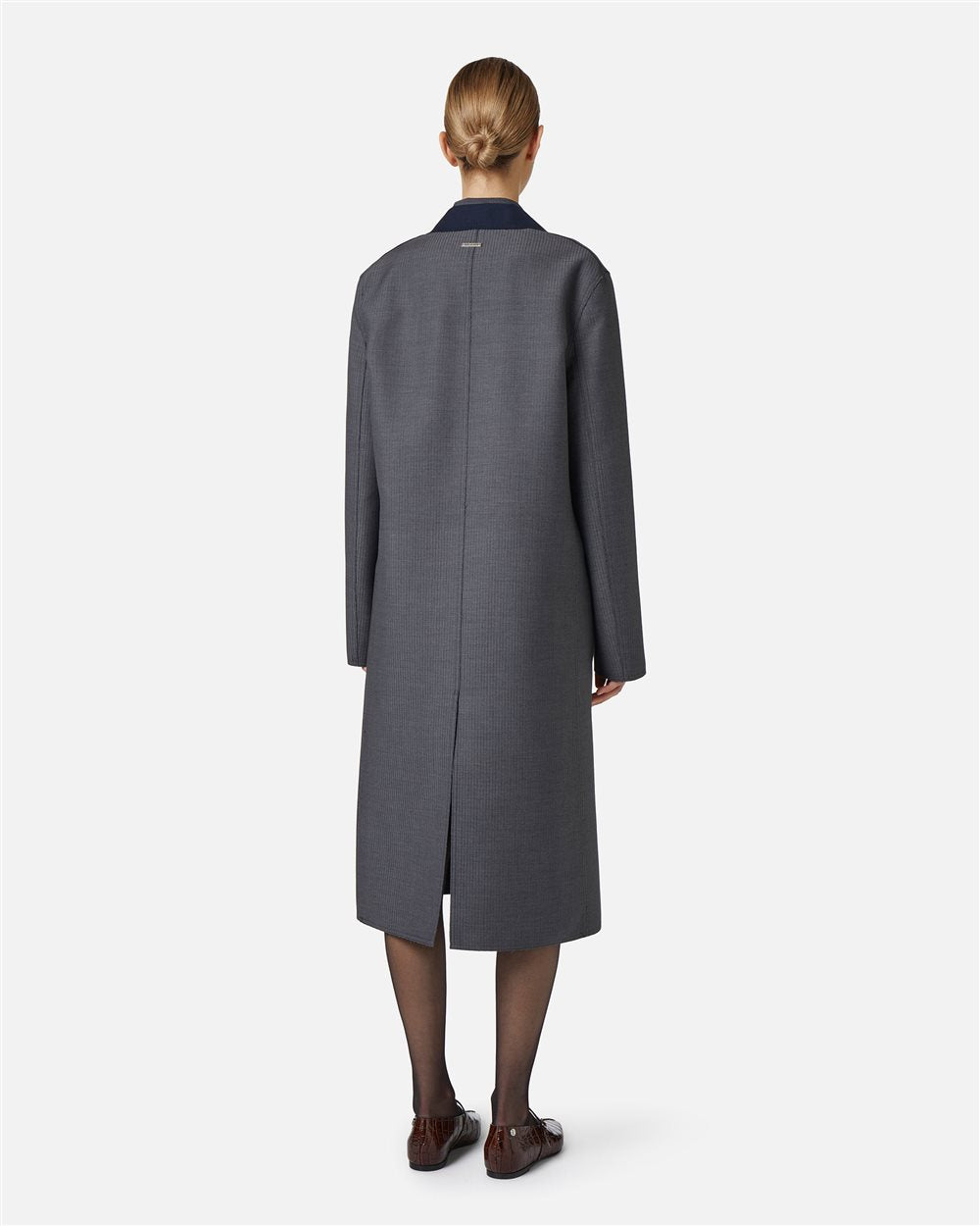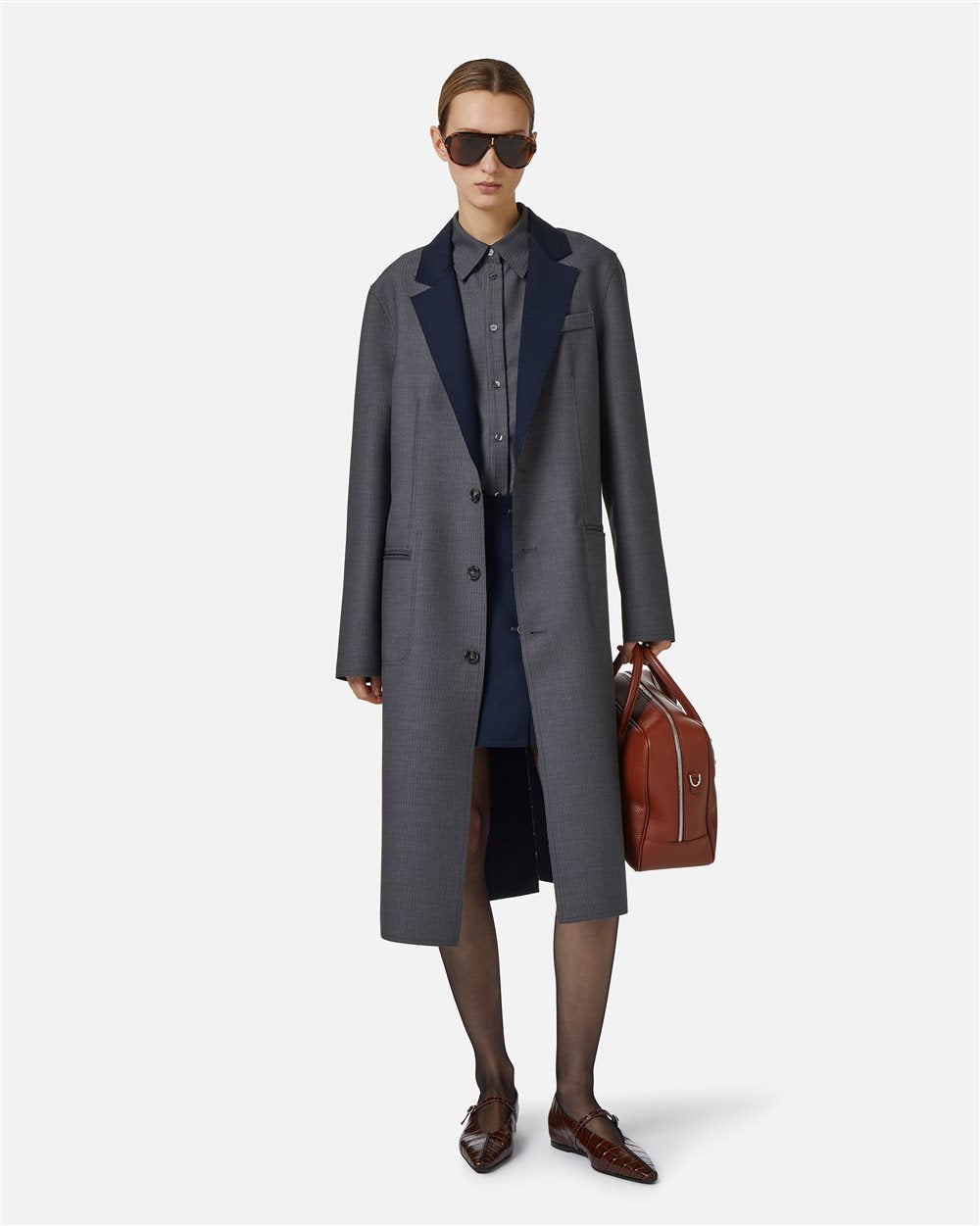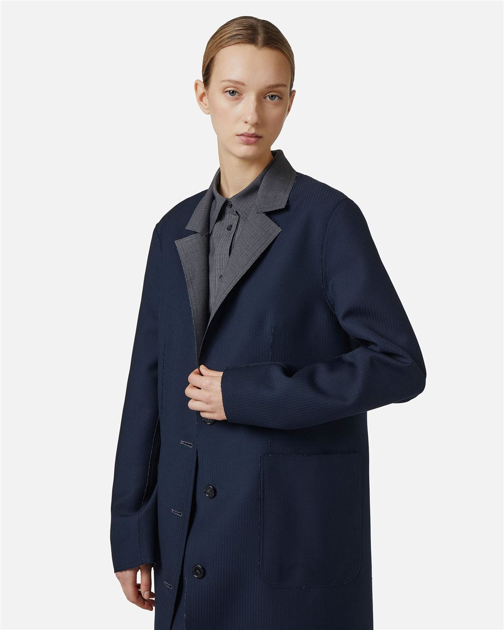 Dupla alma, mesmo estilo. Este casaco regular fit de abotoamento simples é confecionado em tecido de viscose com riscas finas e apresenta laterais em cores contrastantes. Os acabamentos em corte cru e a placa metálica Iceberg em ambos os lados realçam o design essencial e contemporâneo da peça, criada para oferecer versatilidade e caráter num único gesto.