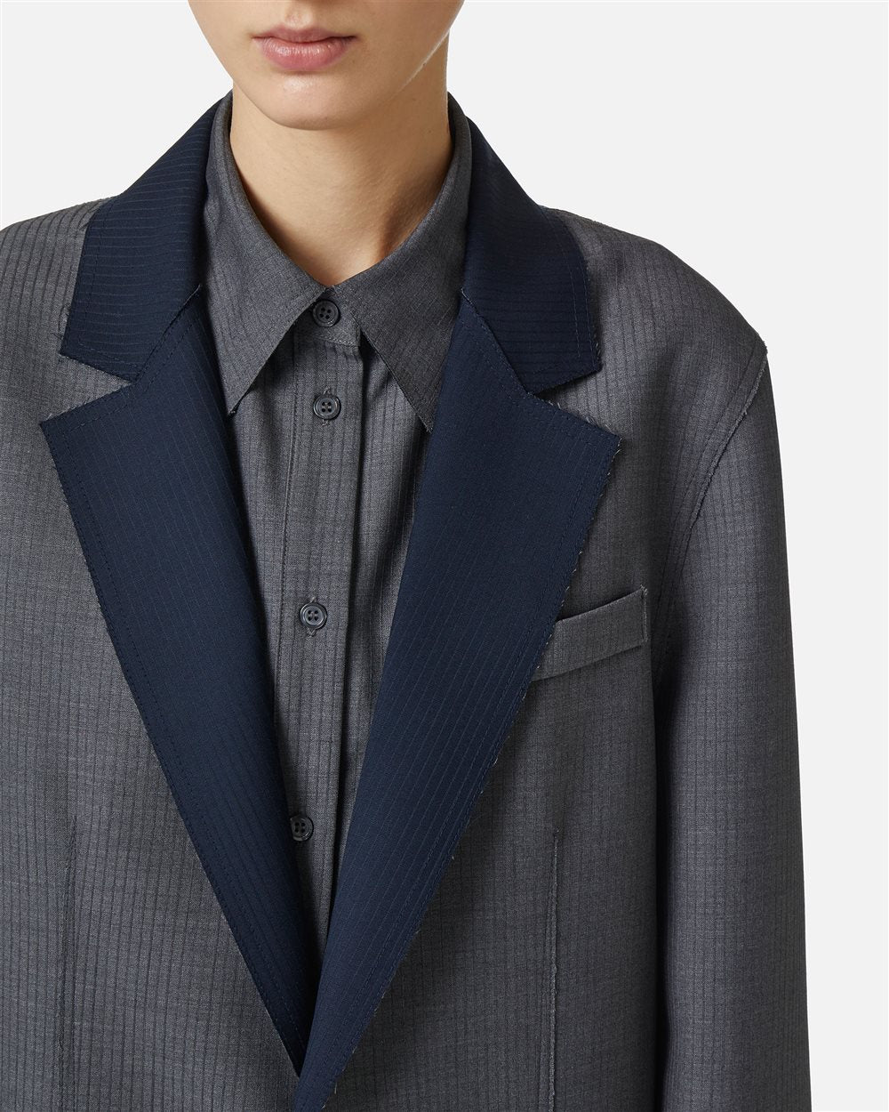 Casaco Reversível em Riscas Finas Cinza Mouse com Detalhes em Corte Cru – Iceberg