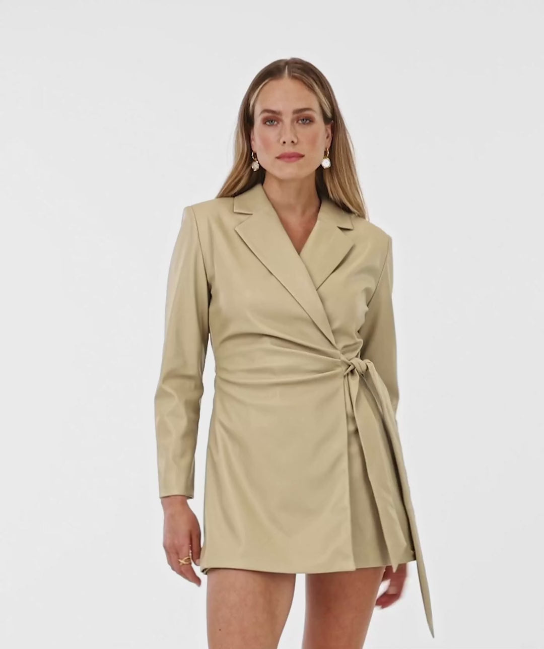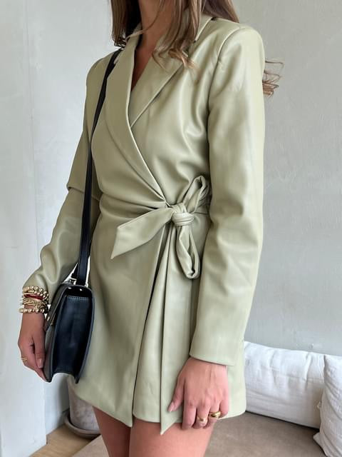The JOSH V Chenda playsuit in the color Fern has the appearance of a dress at the front and a playsuit at the back. The item is made of faux leather and has a regular fit. You can create extra waist definition with the tie closure. The faux leather playsuit is a versatile item that is perfect for various occasions. Combine the one-piece with high boots or a chic pump, and you're ready to go!