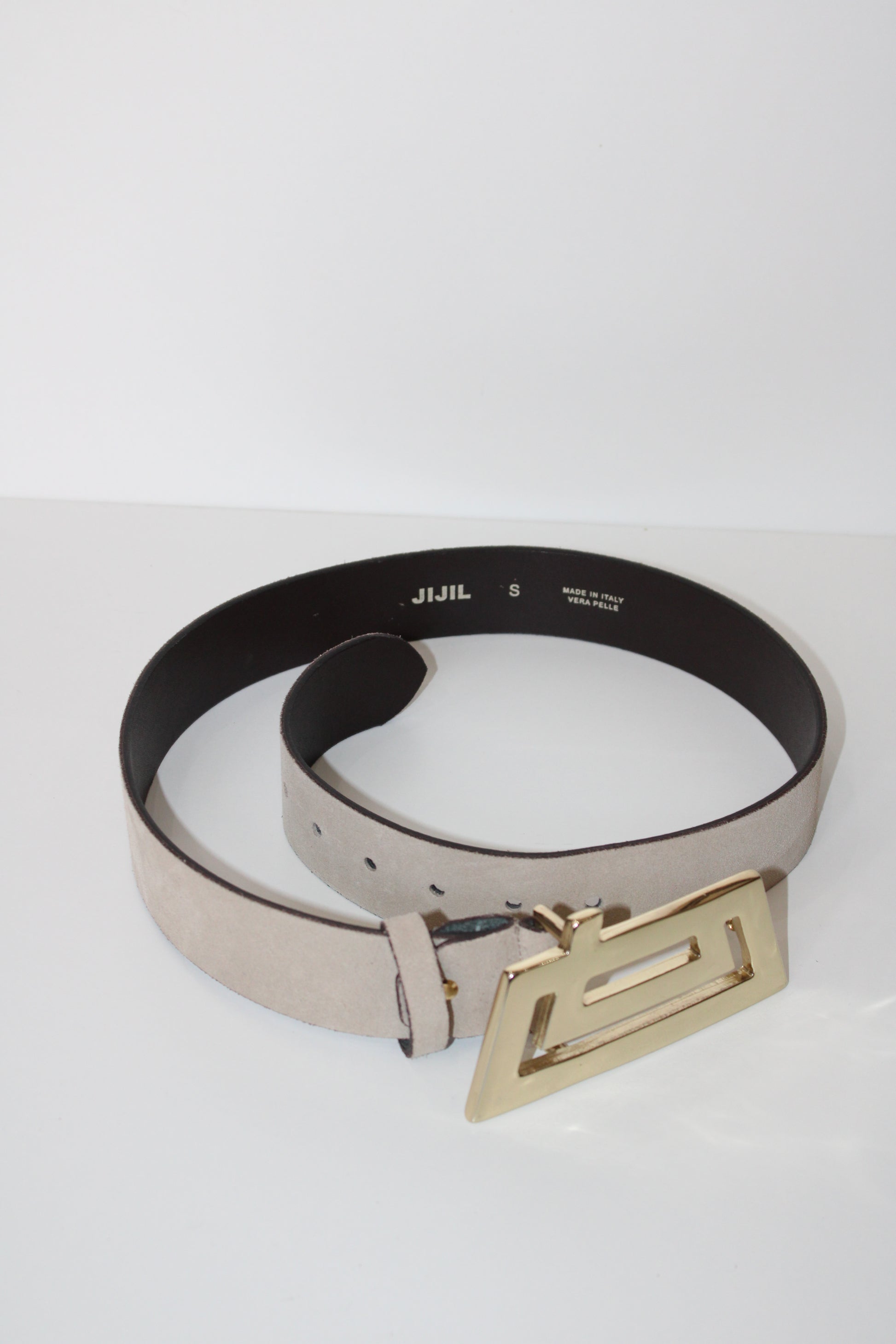 Cinto feminino em camurça com acabamento sofisticado e fivela metálica com design geométrico exclusivo. Um acessório moderno e versátil que eleva qualquer look, seja para marcar a cintura em vestidos fluídos ou para dar um toque statement a calças de alfaiataria. Fabricado em Itália com materiais de alta qualidade.