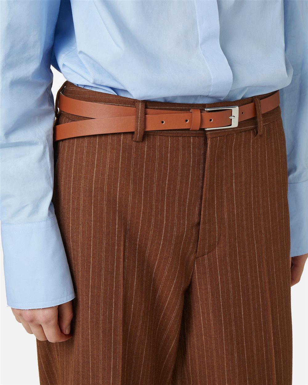 Elegante e discreto, este cinto slim em pele nappa de cor hazelnut oferece um toque de sofisticação subtil a qualquer visual. Apresenta uma fivela refinada e um logótipo Iceberg impresso no interior — um detalhe exclusivo que transmite personalidade sem ostentação. Um acessório versátil, ideal para completar qualquer conjunto com estilo.
