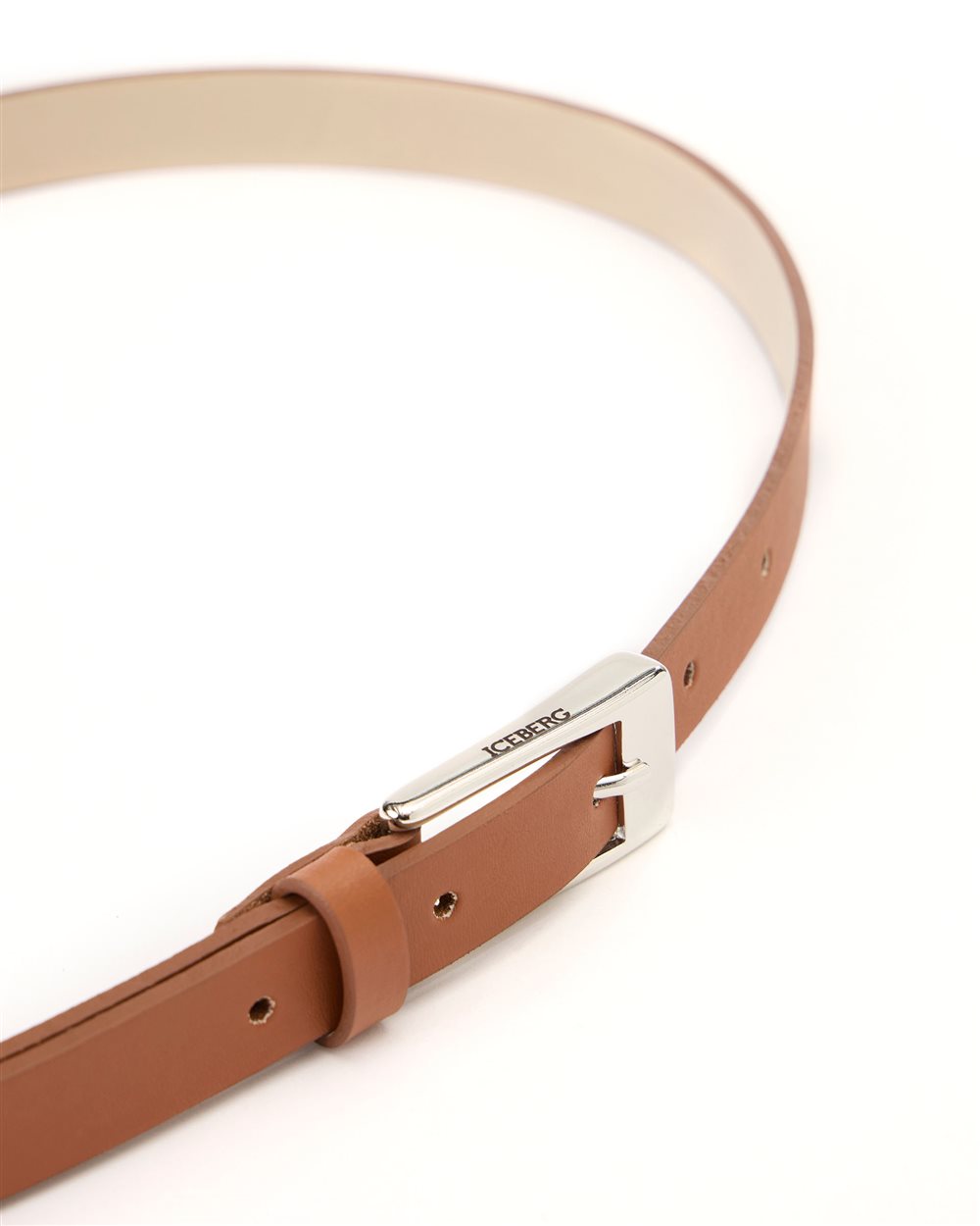 Cinto Slim em Pele Nappa Hazelnut ou Preto com Fivela e Logótipo Interior – Iceberg