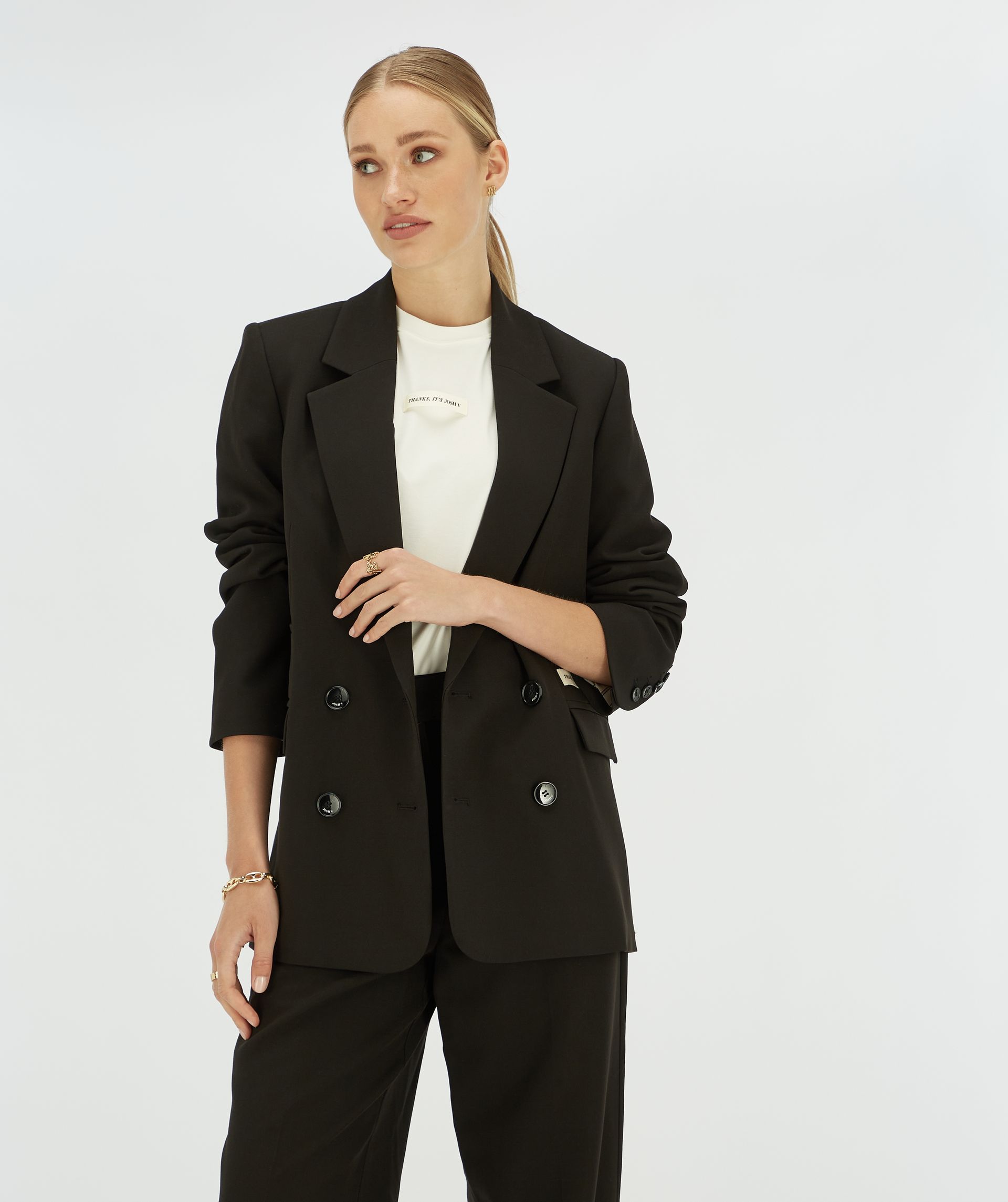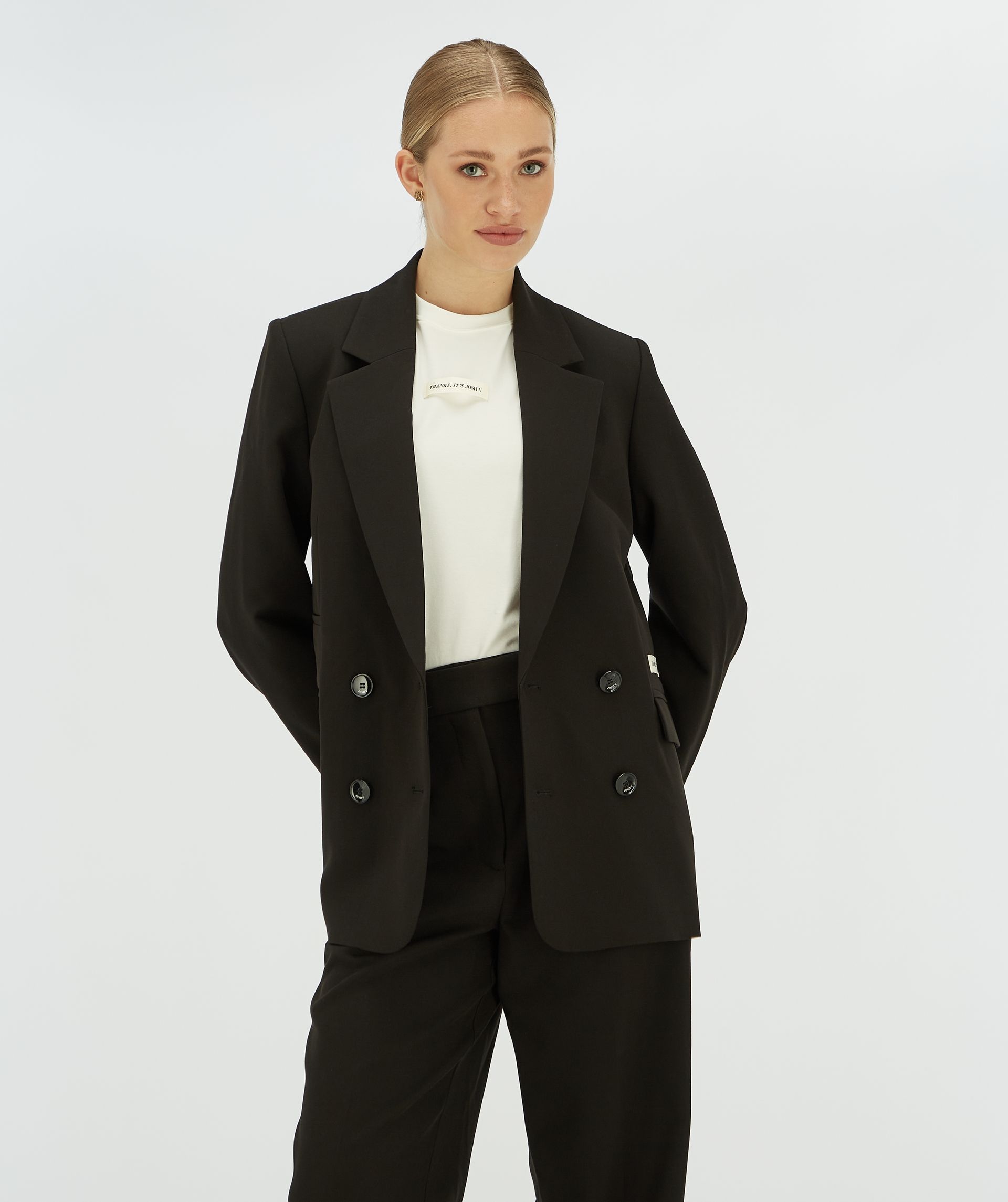 O blazer JOSH V Michelle na cor preta é o blazer preto perfeito com corte reto. O blazer é feito de um tecido confortável de qualidade com poliéster reciclado e elastano. Aposte no terno completo e use o blazer com a calça Mies e o colete Leva pretos combinando. Como alternativa, combine o blazer com uma camiseta básica, jeans e tênis para um look casual.